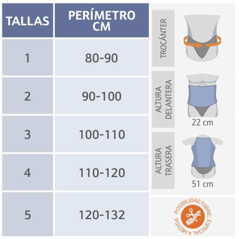 ▍ Características: Confeccionada en tejido tricapa (algodón – espuma – poliéster), semirrígido y transpirable, especialmente diseñado para obtener una máxima transpiración. Sistema de cierres de fácil y cómoda adaptación, que permite el ajuste personalizado a cada paciente en velcro. Las bandas elásticas permiten regular la tensión selectiva aplicada a cada zona. Solapas laterales diseñadas para facilitar la colocación de la faja. Sistemas de cierres con lengüeta libre sin adherente para facilitar su despegue en velcro. Refuerzos posteriores mediante 4 ballenas siendo las 2 centrales extraíbles permitiendo variar la rigidez y la forma de ambas ballenas. Ballenas delanteras para mayor consistencia y sujeción abdominal. Los tirantes combinados en material transpirable tricapa con forma anatómica para su perfecta adaptación unidas en su extremo por banda elástica con sistema de cierre de velcro que permitirá obtener la tracción deseada.